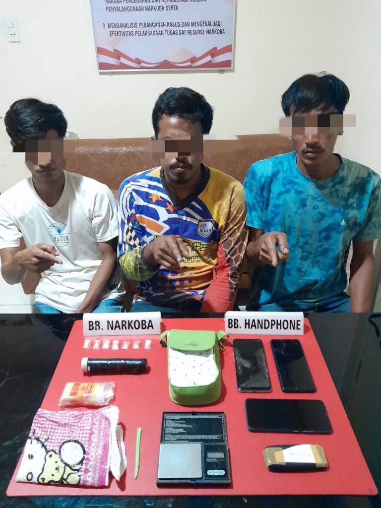Dijelaskan Kapolres Kampar AKBP Ronald Sumaja melalui Kasat Narkoba AKP Aprinaldi bahwa ketiga terlibat dalam jual beli barang haram tersebut.
