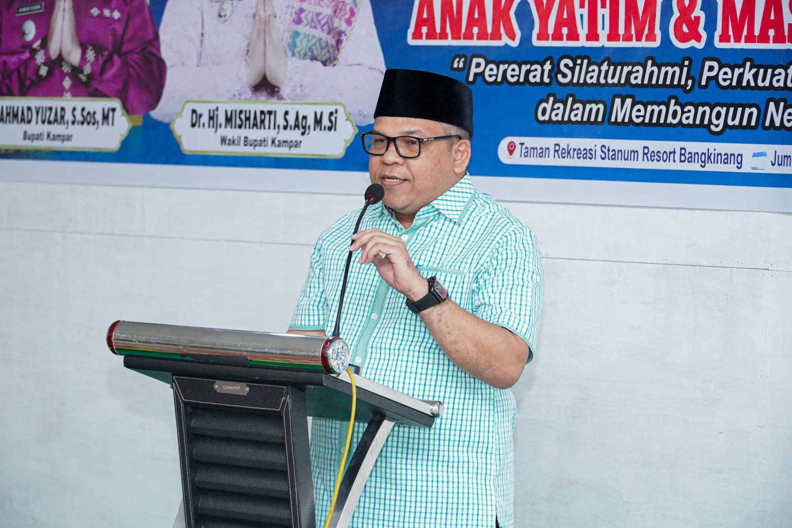 Sebelum menyampaikan arahan, terlebih dahulu Kadis Kominfo Zulfikar secara simbolis terlebih dahulu menyerahan santunan dan sembako kepada anak yatim dan masyarakat sekitar Stanum Bangkinang.
