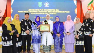 Penghargaan tersebut diserahkan langsung oleh Bunda PAUD Provinsi Riau Henny Sasmita Wahid, dalam kegiatan Apresiasi Bunda PAUD Berprestasi yang diselenggarakan oleh Bunda PAUD Provinsi Riau, bertempat di Balai Serindit, Gedung Daerah Gubernuran Provinsi Riau, Rabu (26/09)