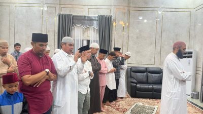 Usai buka puasa dengan minumam dan buah-buahan yang telah disediakan, seluruh yang hadir terlebih dahulu melaksanakan sholat magrib berjema’ah diruangan rumah Dinas yang di imami langsung Syaikh Mohammed Ali Ibrahim.