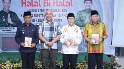Tampak hadir mendampingi Bupati, Wakil Bupati Kampar Dr. Hj. Misharti, S.Ag., M.Si., dan Pj. Sekda Kabupaten Kampar, Dr. Ardi Mardiansyah, S.STP., M.Si.