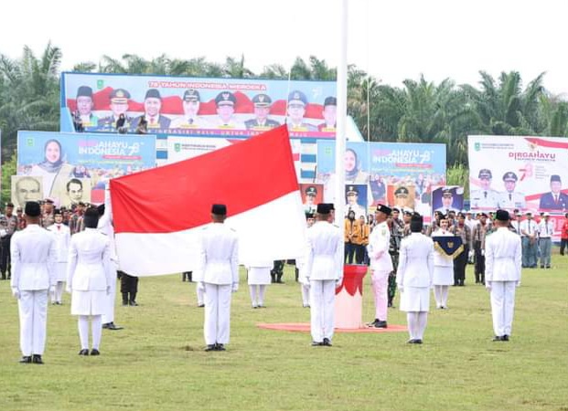 INHU(RakyatTimes.id) – Puncak peringatan HUT ke-78 Kemerdekaan RI tahun 2023 tingkat Kabupaten Indragiri Hulu ditandai dengan pelaksanaan upacara detik-detik proklamasi.