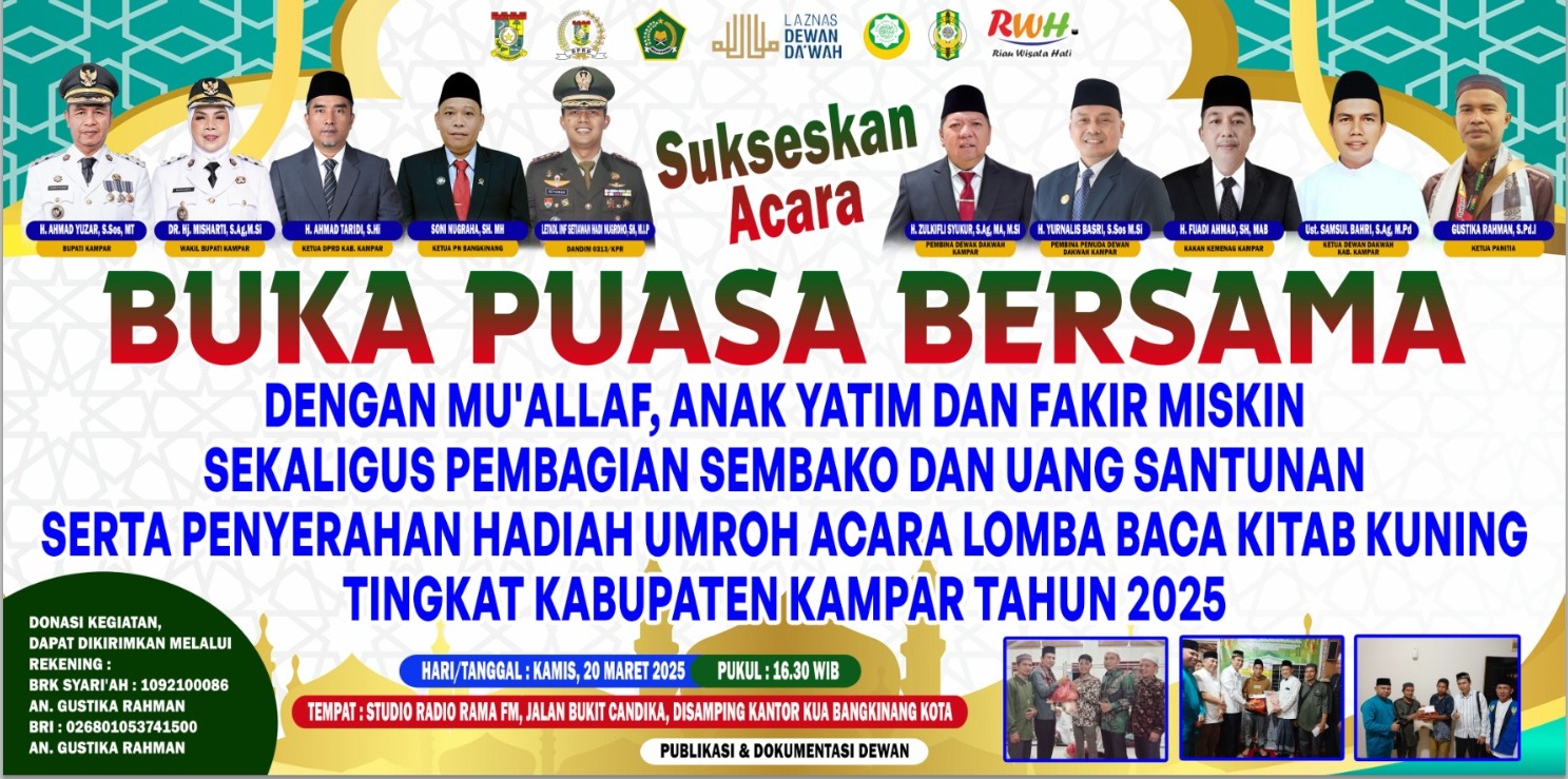 Berita Daerah Kampar Riau Berita Daerah Kampar Riau Dewan Dakwah Kampar Akan Gelar Buka Puasa Bersama Mu’allaf Sekaligus Pembinaan dan Pemberian Santunan Oleh Redaksi • 11 Maret 2025 • Kampar – Setelah sukses melaksanakan Musabaqoh Qira’atil Kutub (MQK) atau lomba Baca Kitab Kuning tingkat...