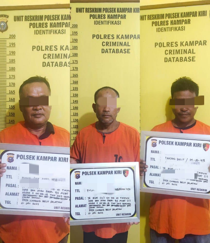 Daerah Hukum Kampar Daerah Hukum Kampar Tiga Pelaku Perambahan Hutan di Desa Tanjung Belit Ditangkap Polsek Kampar Kiri Oleh Redaksi • 22 Juli 2025 • KAMPARKIRI- Jajaran Polsek Kampar Kiri mengamankan tiga pelaku Perambahan hutan atau menduduki kawasan hutan tanpa...