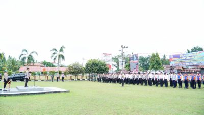 Kapolres Kampar selaku Pimpinan Apel dalam amanatnya membacakan amanat tertulis Kapolda Riau pada Apel Gelar Pasukan Ops Zebra Lancang Kuning 2024, berikut petikannya :