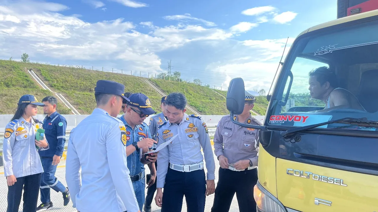 Kegiatan operasi gabungan penertiban kendaraan Over Dimension Over Load (ODOL) dilaksanakan di Gerbang Tol XIII Koto Kampar, beberapa waktu lalu.