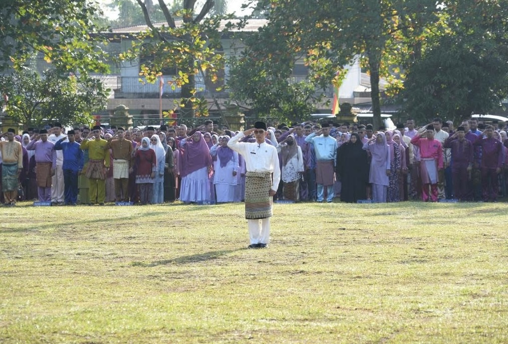 Bertindak sebagai Pembina Upacara, Wakil Bupati Kampar Dr. Hj. Misharti, S.Ag., M.Si menyampaikan amanat yang berisi pesan untuk terus meningkatkan semangat kebersamaan, persatuan, dan kerja keras dalam membangun Riau yang lebih maju dan sejahtera.