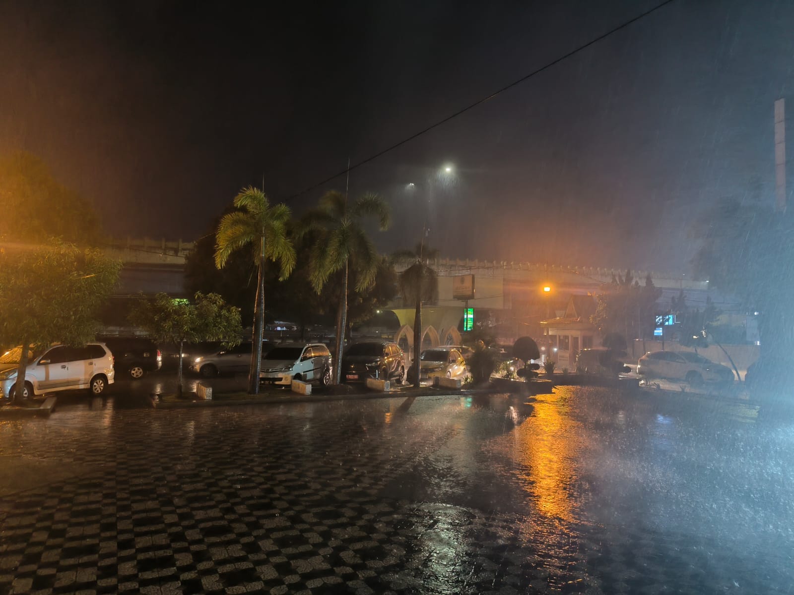 Pantauan dilokasi Jalan Jenderal Sudirman tidak jauh dari Kantor Gubenur Riau dan Jalan Gajah Mada dan Jalan Diponegoro terpantau hujan deras dan angin cukup kencang, Jum’at (29/08/2025) malam ini.
