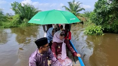 Siak Hulu – Wakil Bupati Kampar, Dr. Hj. Misharti, S.Ag, menyerahkan bantuan kepada masyarakat terdampak banjir di Desa Buluh Cina, Kecamatan Siak Hulu, pada Jumat (07/03/2025) yang terjadi akibat meluapnya Sungai Kampar setelah dibukanya pintu bendungan PLTA Koto Panjang pada minggu lalu.