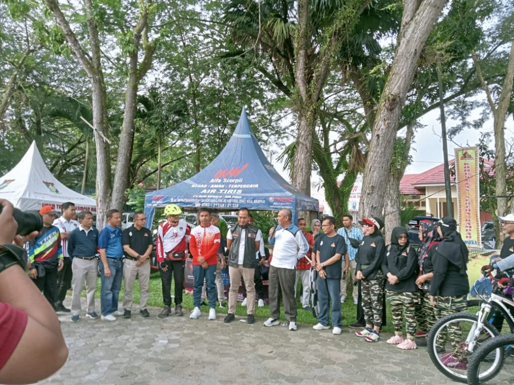 Usai melepas, Kamsol dan Ketua ISSI Riau ikut bersama para peserta mengunakan sepeda yang telah dipersiapkan.