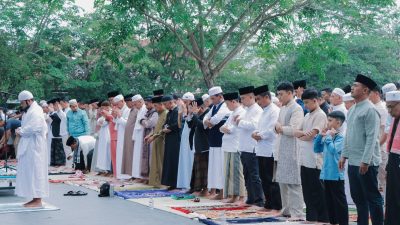 Lebih lanjut, Hambali menyampaikan rasa syukur. Karena dipagi yang cerah dan dihari kemenangan ini, kita semua masih diberikan kesempatan umur panjang, kesehatan badan sehingga kita bisa hadir di lapangan ini.