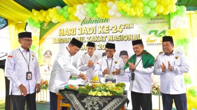Bangkinang Kota – Dalam rangka peringatan Hari Jadi yang ke-24 Badan Amil Zakat Nasional tahun 2025, Pj Bupati Kampar H. Hambali, SE, MBA, MH menghadiri serta menyalurkan santunan Kepada 900 Orang orang Anak yatim termasuk cleaning service, tukang parkir, Tukang Sapu jalan, Tukang Sampah, Pemulung, Pencari Batu, serta 7 (Tujuh) orang Penghargaan Unit Pengumpul Zakat (UPZ) antar OPD, yang diselenggarakan di Kantor Baznas Kampar, Jum’at (17/1/2025).