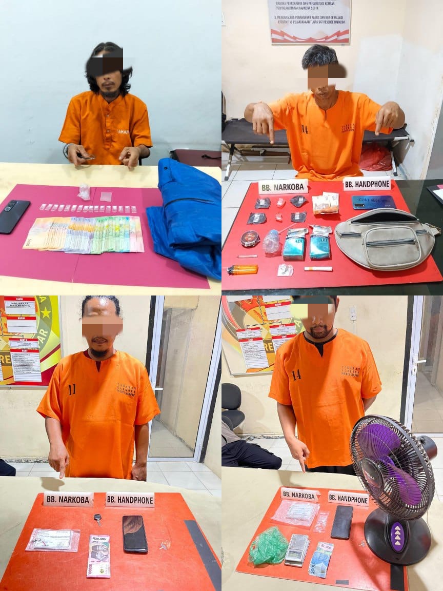 BANGKINANGKOTA – Perang terhadap narkoba di Kabupaten Kampar terus digencarkan! Kapolres Kampar AKBP Boby Putra Ramadhan S menunjukkan komitmennya yang kuat dalam memberantas peredaran narkoba di wilayah hukum Polres Kampar. Kali ini, 4 pelaku narkoba berhasil disikat dalam operasi terpisah.