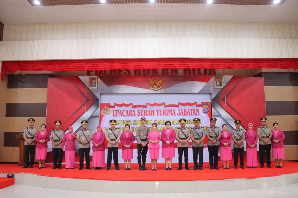 Prosesi upacara serah terima jabatan (Sertijab) langsung dipimpin Kapolres Rokan Hilir AKBP Andrian Pramudianto SH SIK MSi dengan dihadiri Ibu Ketua Bhayangkari Cabang Rokan Hilir, Para Kabag, Para Kasat, Para Kapolsek Jajaran Polres Rokan Hilir, Para Kasi dan Perwira Polres Rokan Hilir, Para Bintara Staf beserta Ibu Pengurus Bhayangkari Cabang Rokan Hilir.