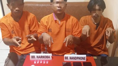 Kampar, – Satuan Resnarkoba Polres Kampar kembali menorehkan prestasi gemilang dalam memberantas peredaran narkoba di wilayah hukumnya. Pada Selasa (04/03/2025) sekira pukul 03:45 WIB, tim Opsnal Sat Resnarkoba Polres Kampar berhasil mengamankan tiga orang tersangka pengedar dan pemakai narkoba jenis sabu di Dusun III Padang Terap Rt 004 Rw 009 Desa Muaro Jolai Kecamatan Kampar Utara Kabupaten Kampar. Ketiga tersangka yang diamankan adalah MF (27), AZ (29), dan AW (22).