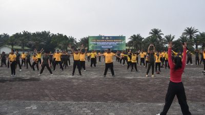 Setelah apel pagi, kegiatan dilanjutkan dengan olahraga bersama yang dipimpin oleh instrukturnsenam pekanbaru Ria Ika, Nola , dan Aini dan Suasana menjadi sangat meriah dan menunjukkan keakraban antara personel TNI dan Polri.