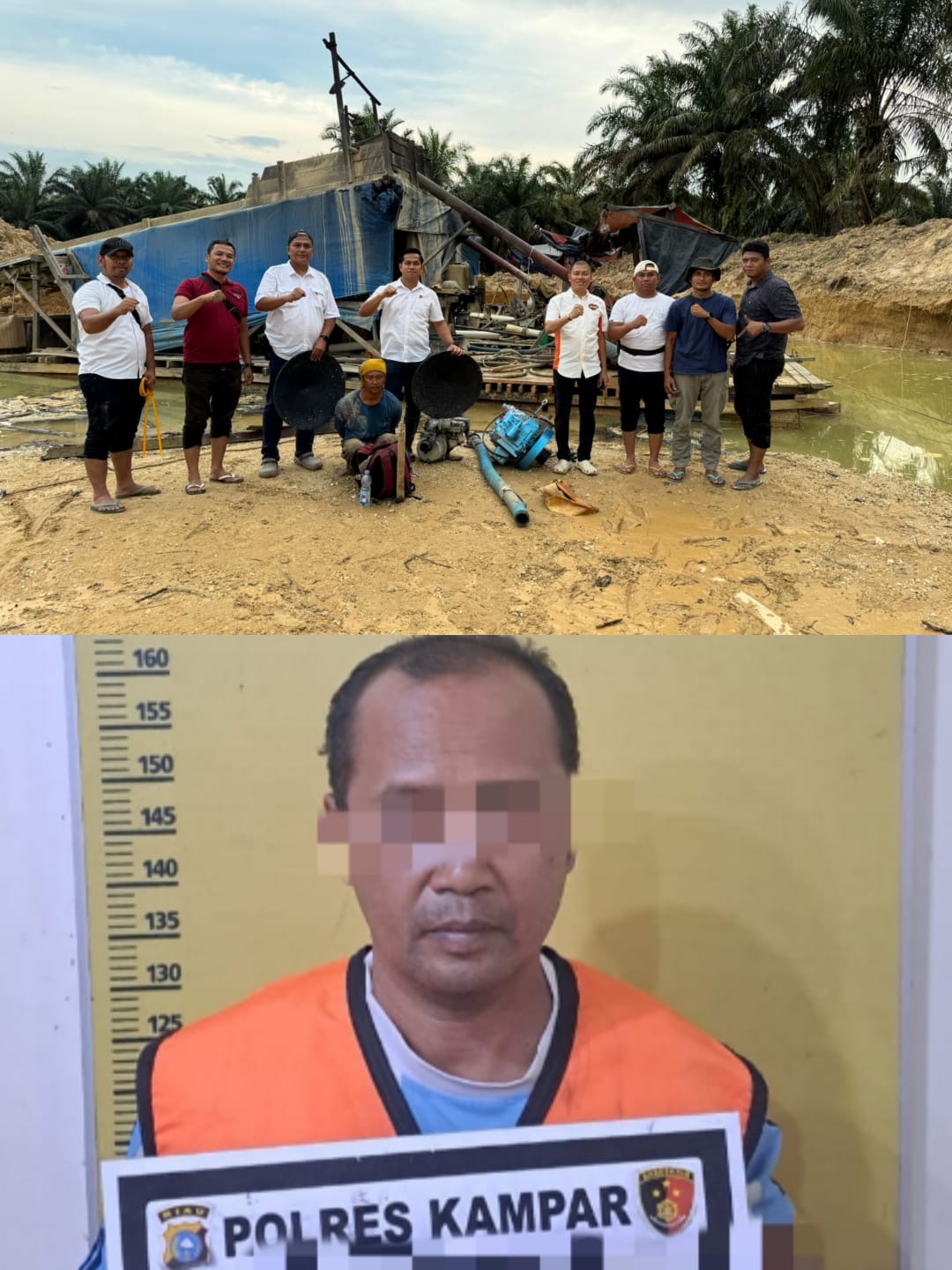 Penangkapan ini berawal saat Satreskrim Polres Kampar mendapatkan informasi bahwa terjadi penambangan emas tanpa izin di Desa Lipat Kain selatan, Kecamatan Kampar Kiri.