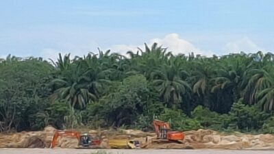 Pantauan di lapangan, Rabu (29/4/2026) menunjukkan dua alat berat beroperasi setiap hari mengeruk material dari aliran sungai. Puluhan dump truck hilir mudik mengangkut hasil tambang.