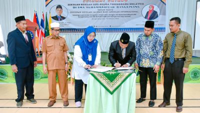 BANGKINANGKOTA(KamparUpdate.com) – Dalam Rangka Program Sekolah Jalinan dan Jaringan Internasional, Pj Bupati Kampar H. Hambali, SE, MH yang diwakili Oleh Kepala Dinas Dispora Kampar H. M. Aidil Hadiri MoU antara SD Muhammadiyah 019 Bangkinang dan SD Muhammadiyah Kampa Full Day School bersama Sekolah Kebangsaan Seri Geliga Terengganu Malaysia, yang diselenggarakan di Ruang Auditorium SMA Muhammadiyah Bangkinang, Senin (26/2/2024).
